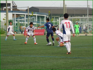 しかし大正FCさんの守備を中々突破できず、得点を奪えないでいると、後半の23分に大正FCのサイドチェンジからTOPへのロングパスを履正社CLUBの守備の対応が遅れたスキに得点を奪われてしまいました。