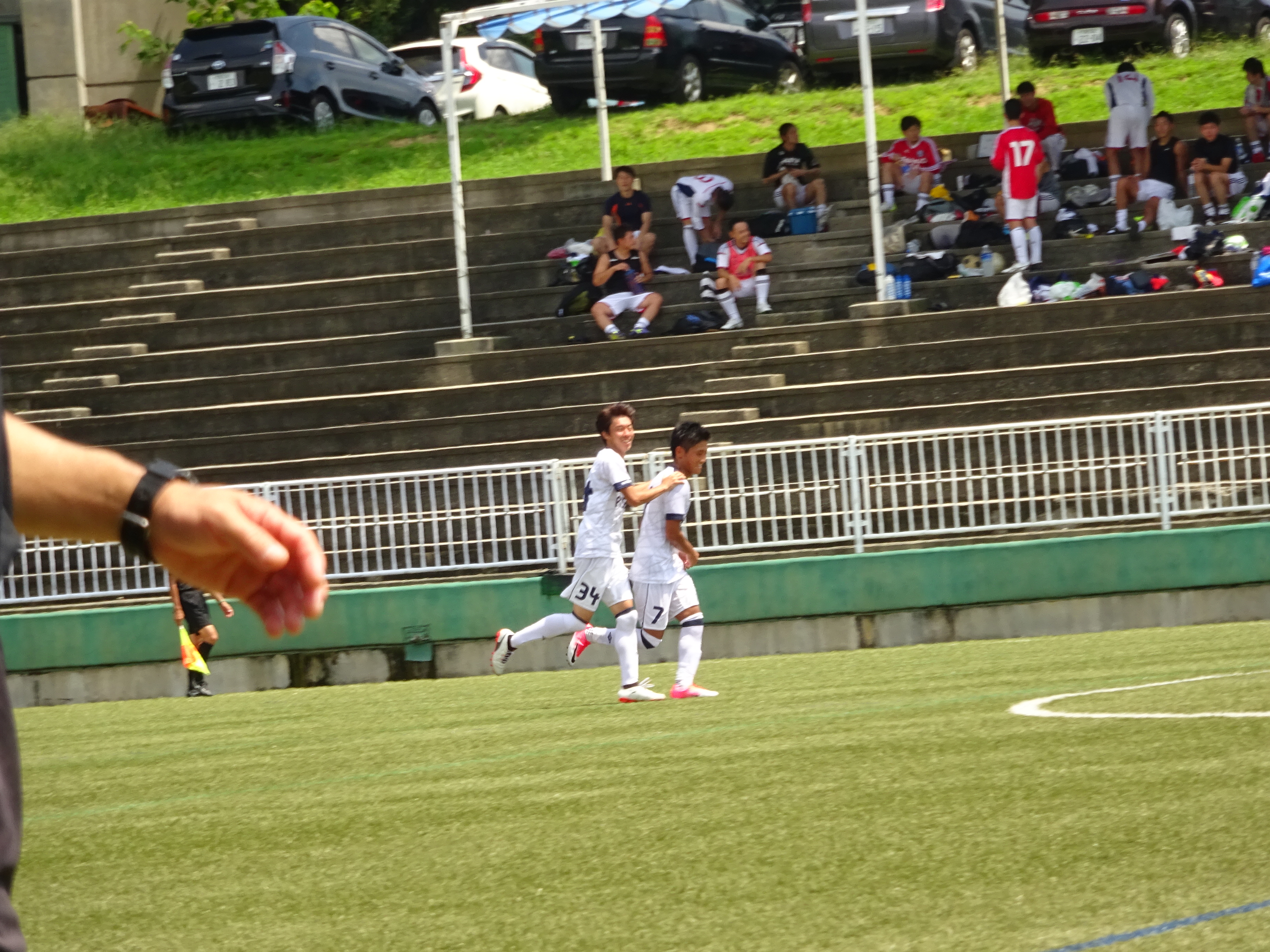 そして後半28分に梶原がゴール前にドリブルで仕掛けたこぼれ球を植田大介(大商学園高校出身2年)が勝ち越しゴールを冷静にゴール隅へ流し込み、シーソーゲームを決着。