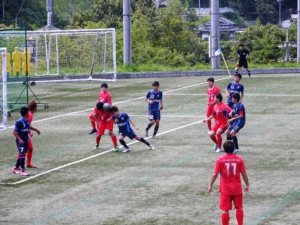 序盤からハイプレスを掛け主導権を握るゲーム前のプランをキャプテンの髙森を中心に成し遂げる事ができ、3分に藤原から梶原へつなぎ、幸先よく先制点を決めました。