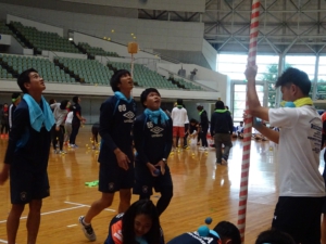 今年はコース・学科対抗での開催で、サッカーコースは「水色」チームで頑張りました。