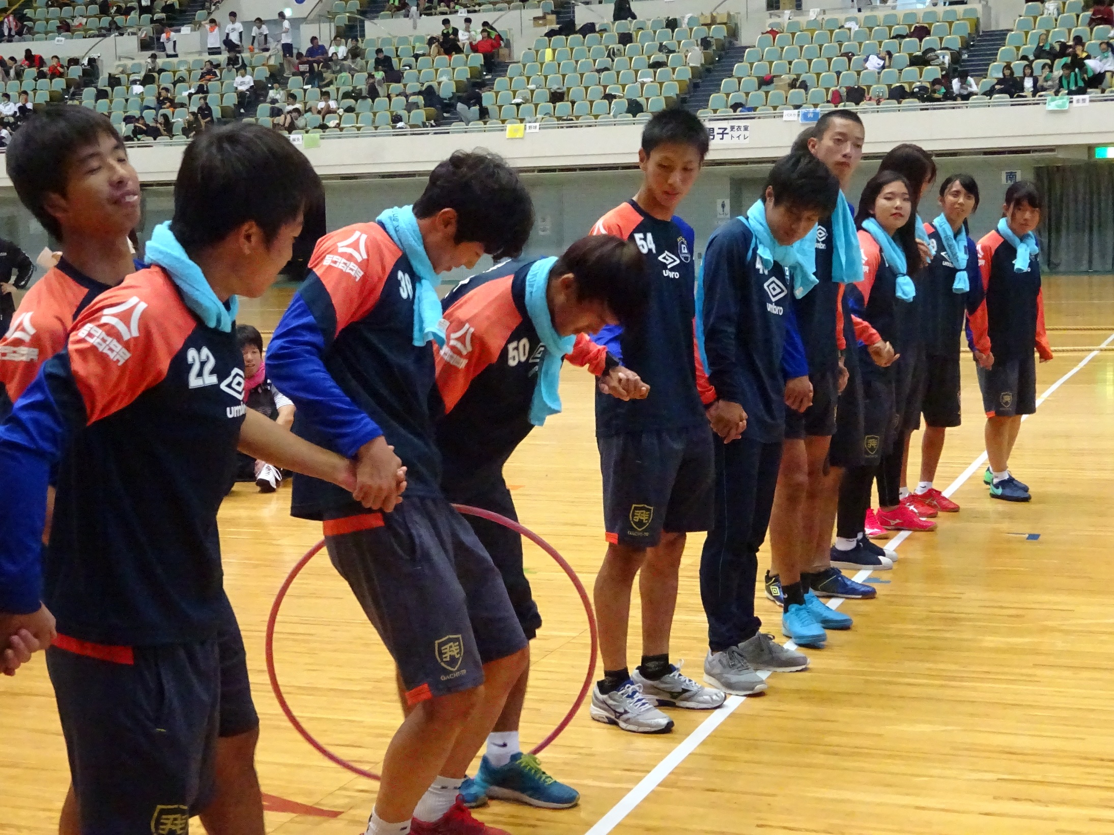 今年はコース・学科対抗での開催で、サッカーコースは「水色」チームで頑張りました。