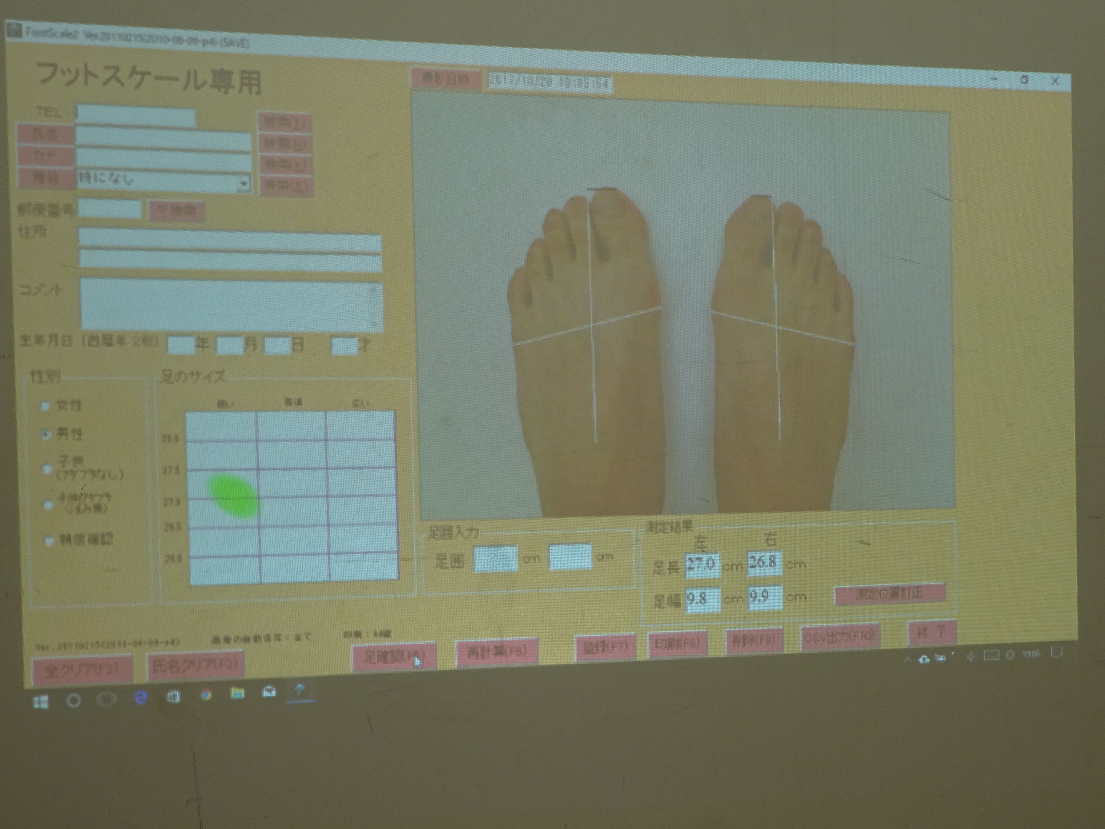 自分の足に合ったシューズの選び方や自分の足の大きさやどんな形なのかを知るための計測、そして実際に一人ひとりアドバイスを貰って試し履きもさせて頂きました。