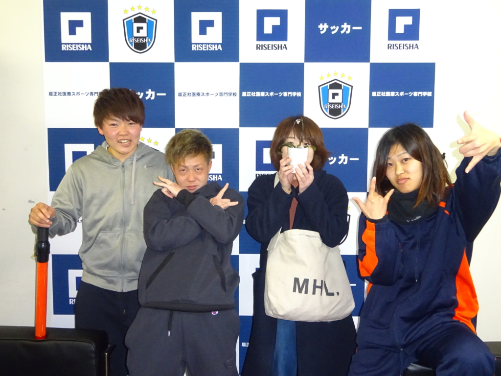 2015年度鍼灸学科卒業生 村岡愛美さん(写真左)、2014年度サッカーコース卒業生 長尾栞奈さん(写真左から2番目)、