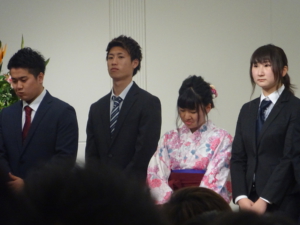 卒業生の皆さんは、2年前の入学式より一段とたくましくなり垢抜けた姿で卒業式に出席。