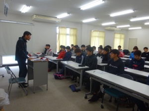 8:30にこれからの学び舎となる履正社茨木キャンパスに集合しました。まだ入学式でしか顔を合わせていない36名の入学生はお互いに話すこともできず、モジモジしている中、高祖先生のオリエンテーションキャンプの開校の挨拶によりスタートしました。