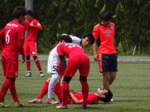 今日は1.FC Minohとの試合で相手は大阪社会人リーグの2部で自分たちより格上の相手ということで、最初は様子を見ながらカウンターを狙っていました。