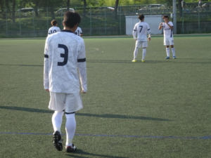 公式戦の初戦なので絶対に負けたくない試合でしたが、前半、点を決めきれずに相手にミスをつかれて3失点し、後半、点を取ったもののすぐに取り返されて結果3-5で敗戦しました。