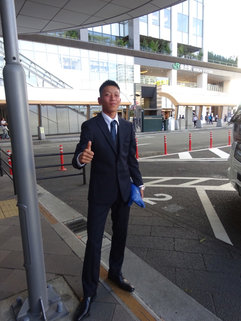 JR仙台駅からは、高祖先生・キャプテンの小畑孔陽(柳学園高等学校)はタクシーで監督主将会議に向かい、