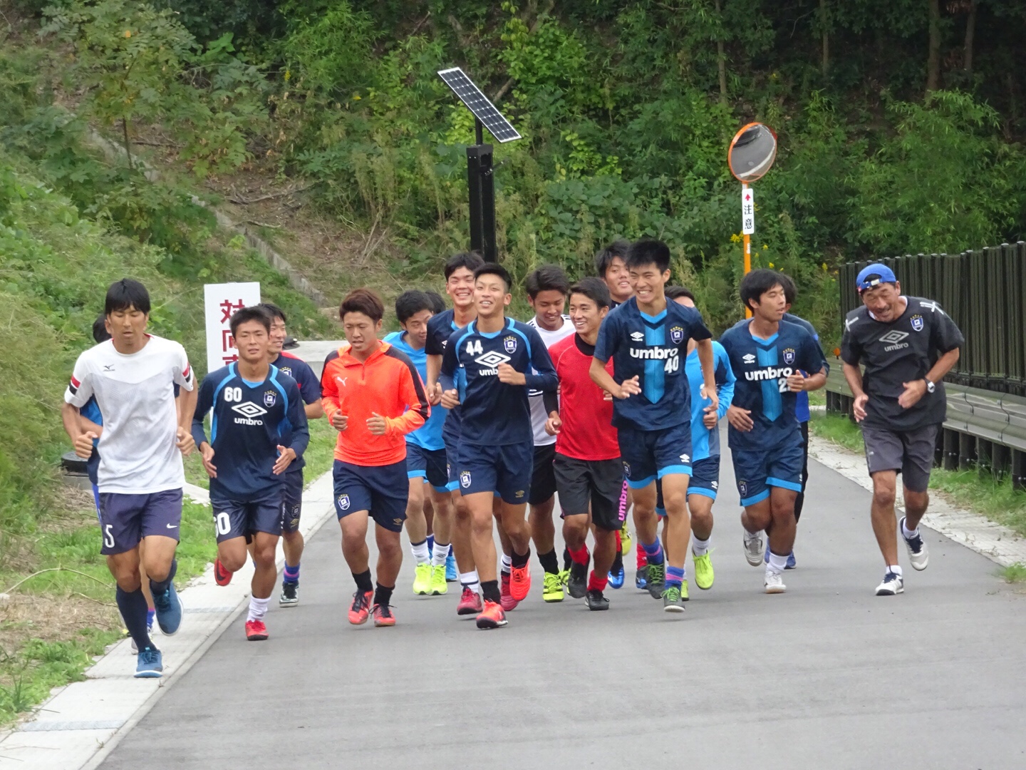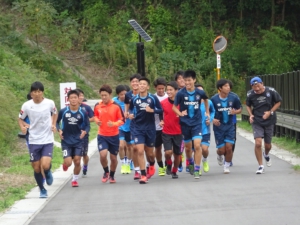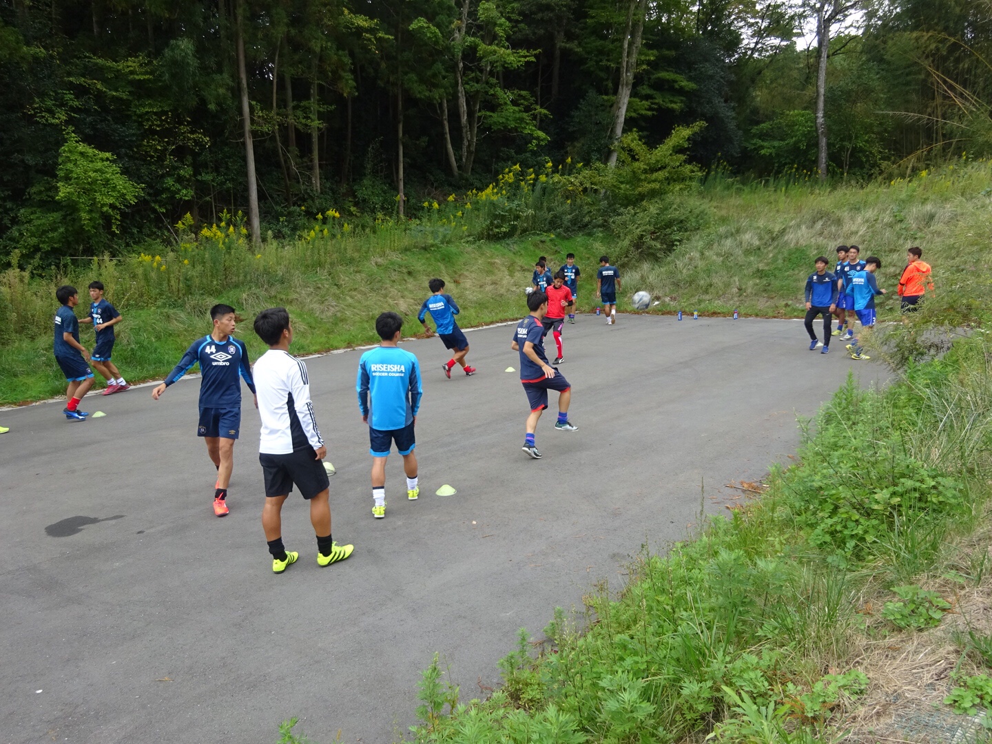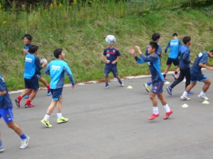パスでボールを出した方向と反対の方向へ行くなどの頭を使うトレーニングをし、最後はランニングをしました。