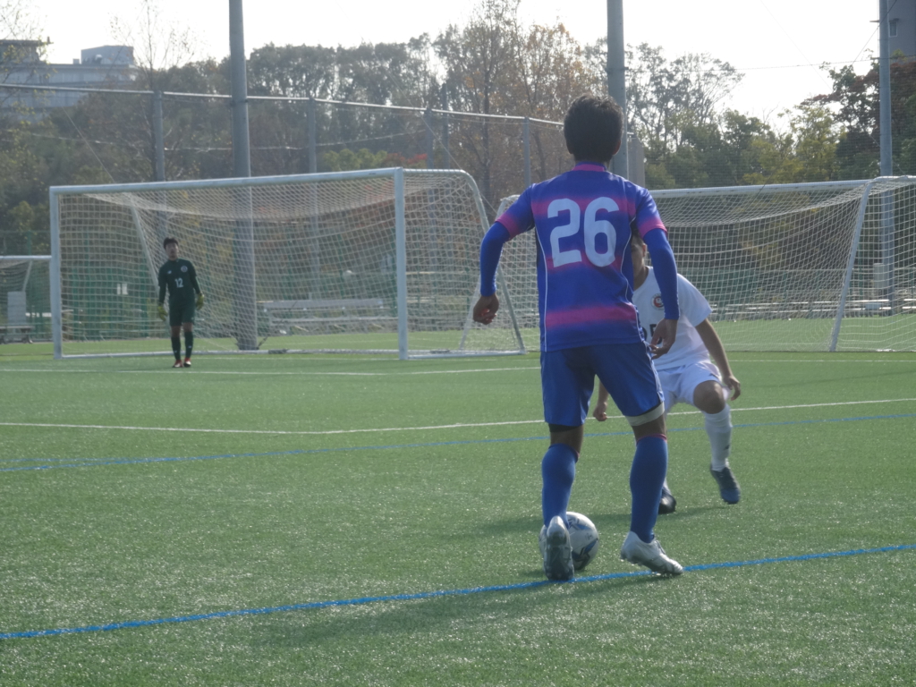 前半は、相手からボールを奪って時間をかけずにすぐ攻撃に転じることができ、カウンターから2点取ることに成功しました。しかし、終盤につれて遅くなる攻守の切り替え、球際の軽さ、自分のポジションに戻るのが遅いなどで、相手に隙を少し見せた場面もありました。ですが、全体の流れとしてボールを保持しながら、しっかりシュートで終わることができたので、自分たちのペースで試合を進めことが出来ました。