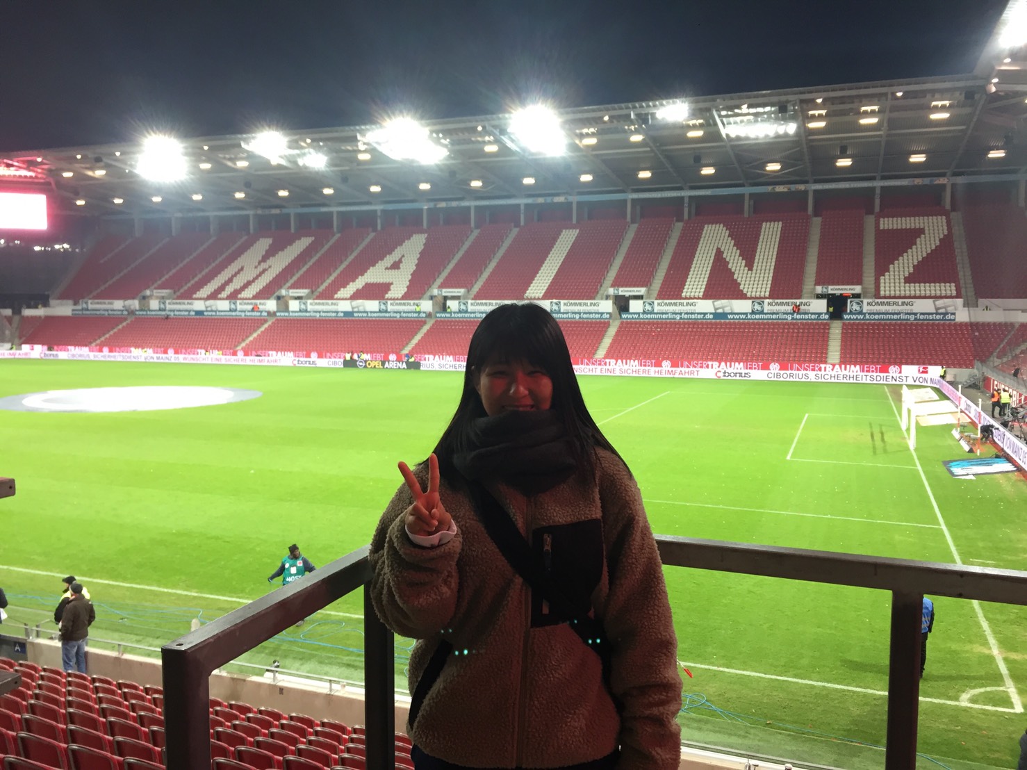 また、到着したその日は朝から買い物へ行き、昼過ぎからマインツの試合観戦へ行ったそうです。