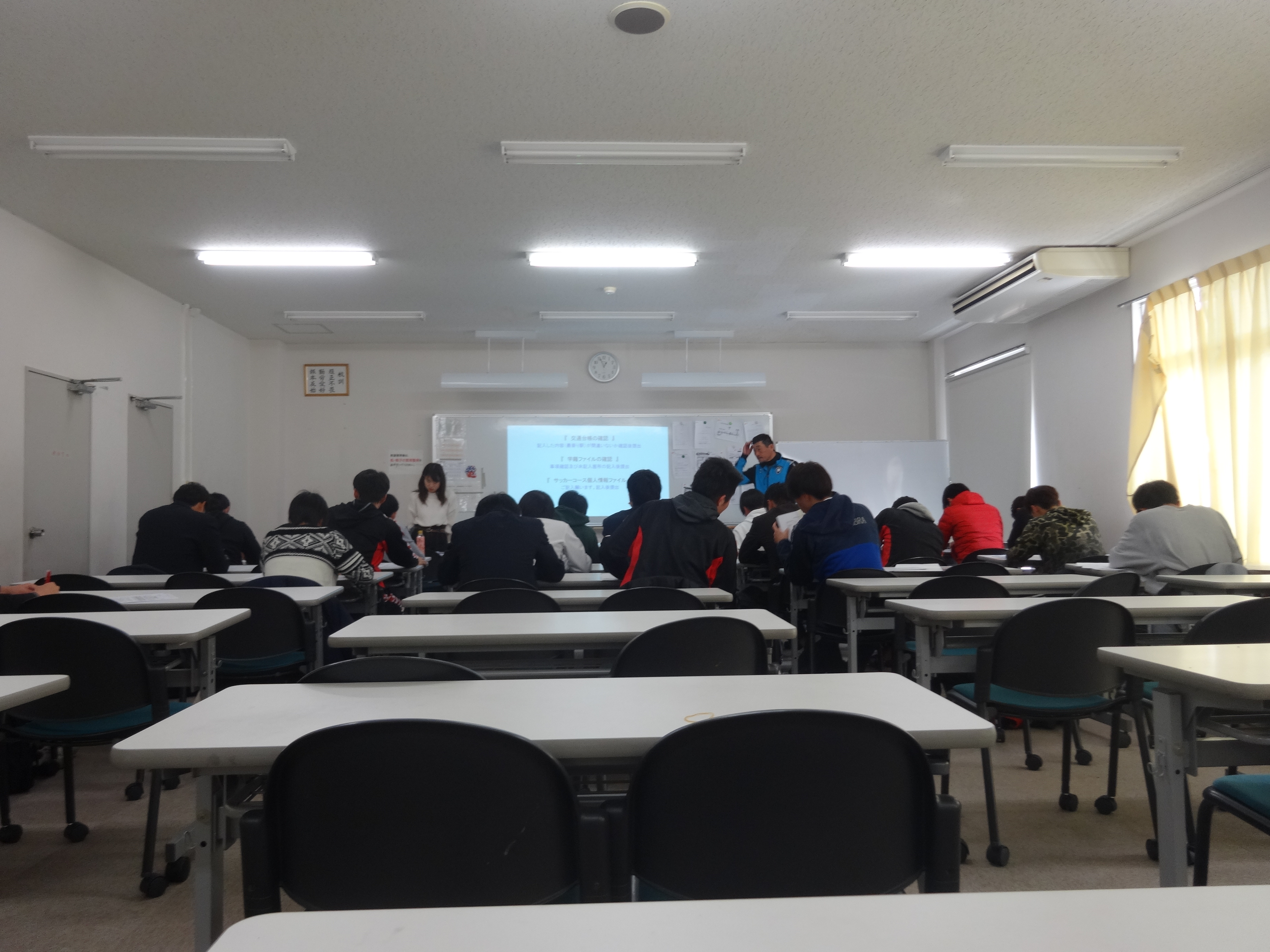 練習でしっかり汗をかいた後は午後から茨木キャンパス内の教室にて新入生に向けられたガイダンスが行われました!