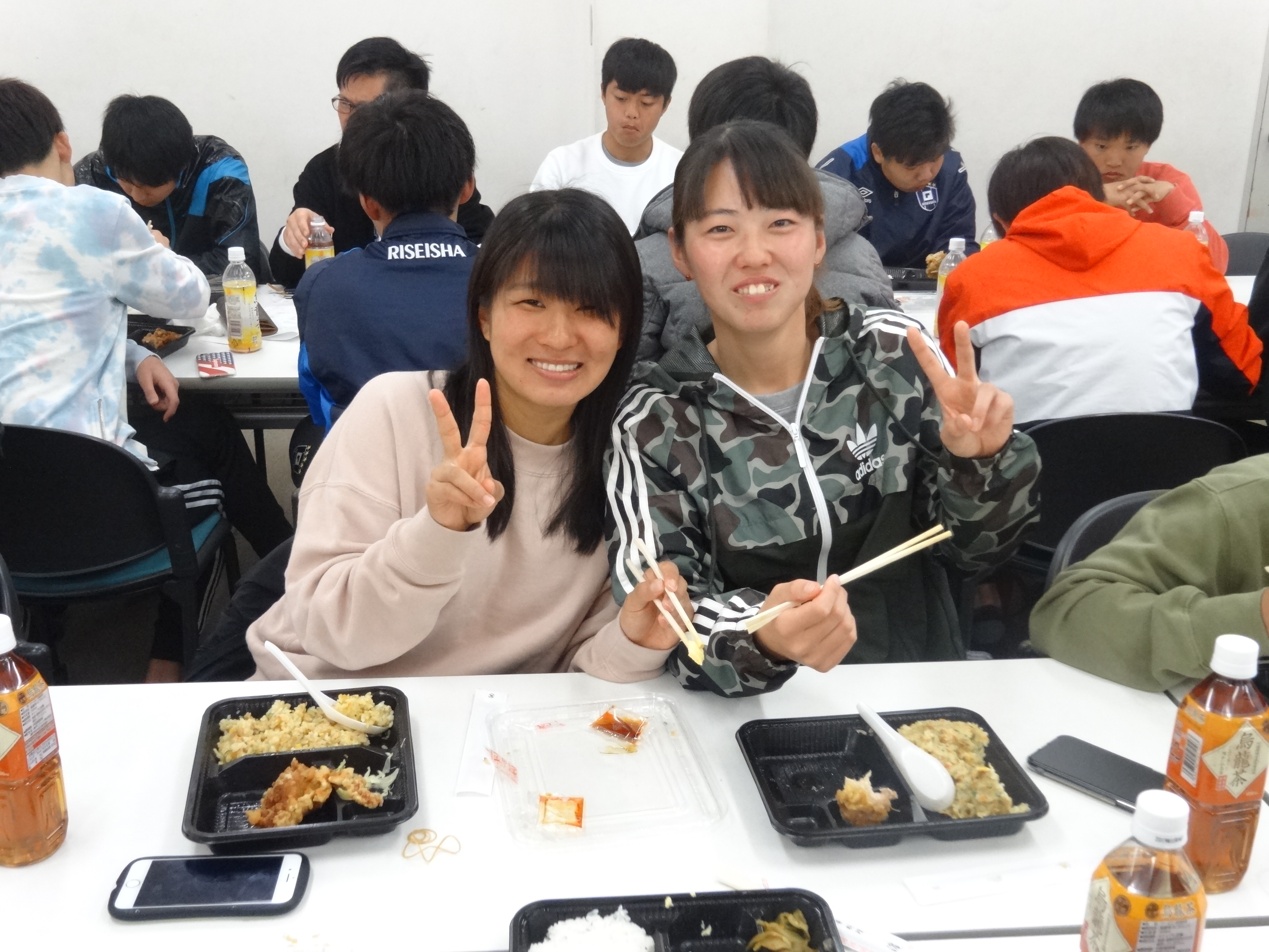 追い出しゲームでしっかり汗をかいた後、みんなで笑顔いっぱい昼食を食べました!