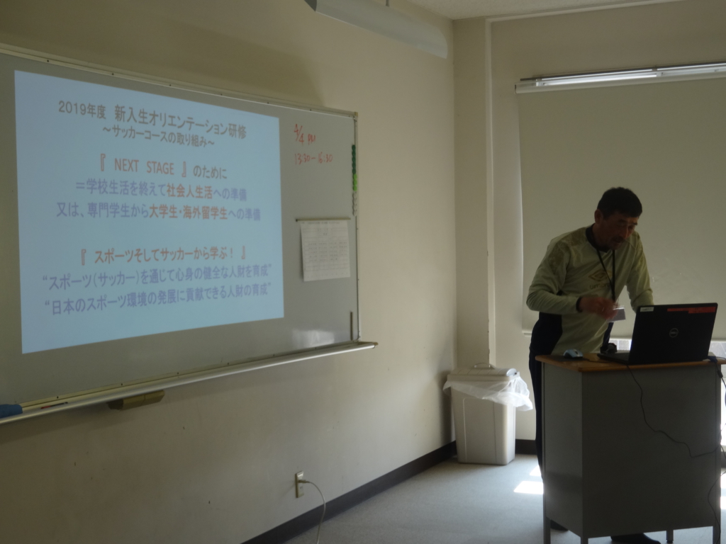 サッカーコースGM高祖先生からスポーツマンシップの大切さ、サッカーコースについての取り組みや理念、履正社サッカーのスタイル、履正社医療スポーツ専門学生としての行動などなど、説明を受けました!