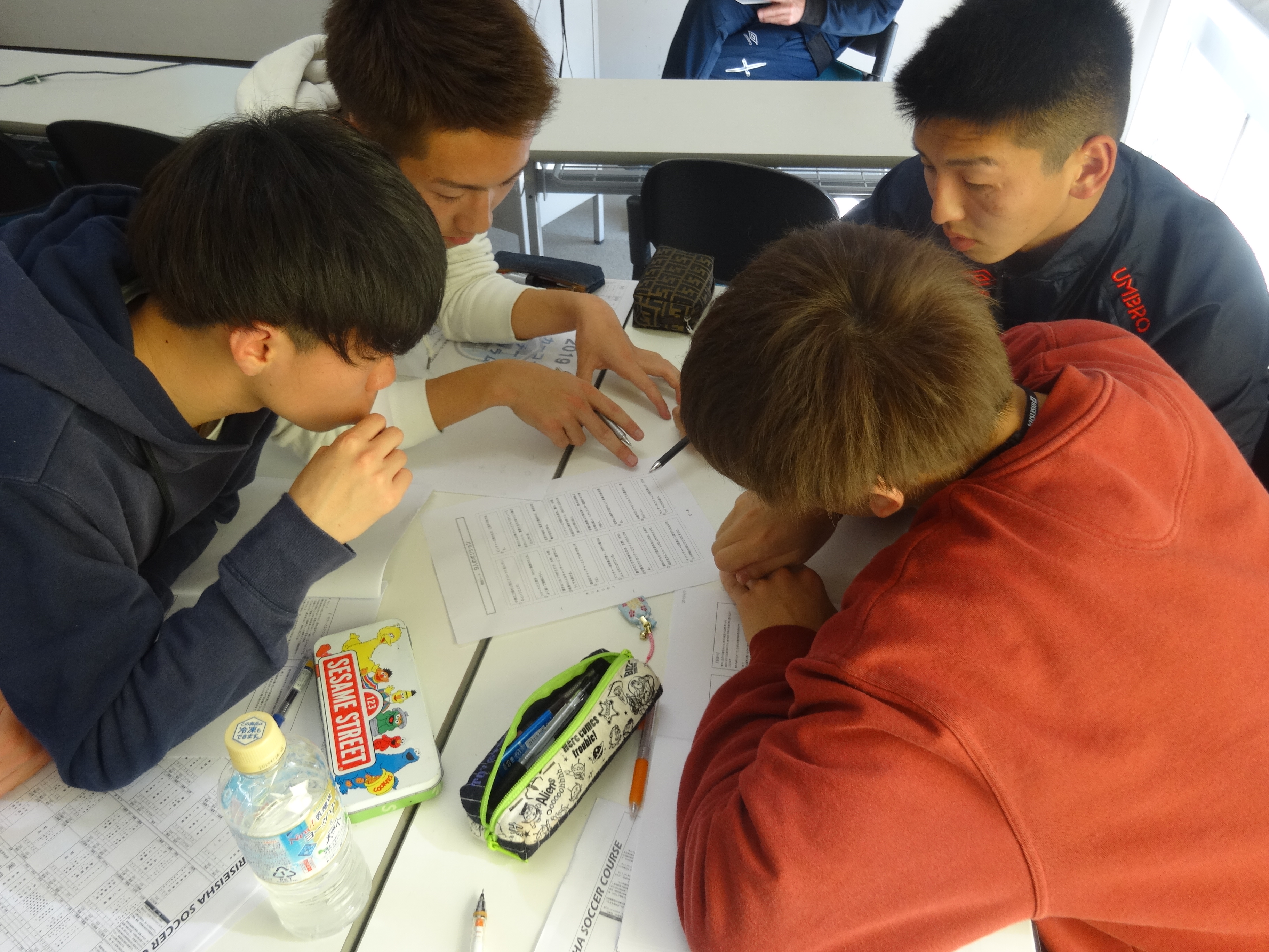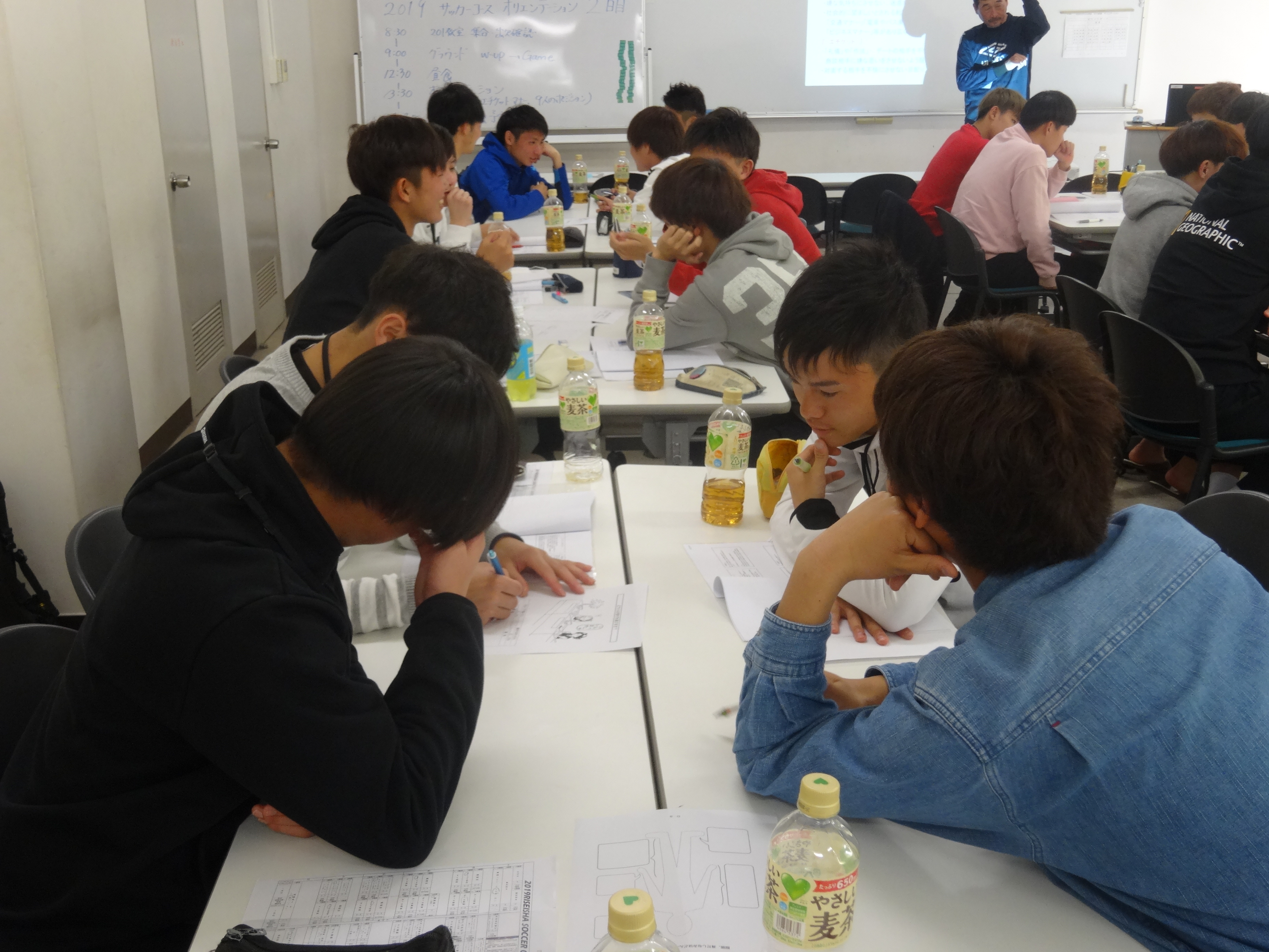 第1プログラムでは社会人としてはもちろんのことサッカーコースの学生でも必ず必要な「報告・連絡・相談」のホウレンソウの重要性とマナーとエチケットについて、学びました。