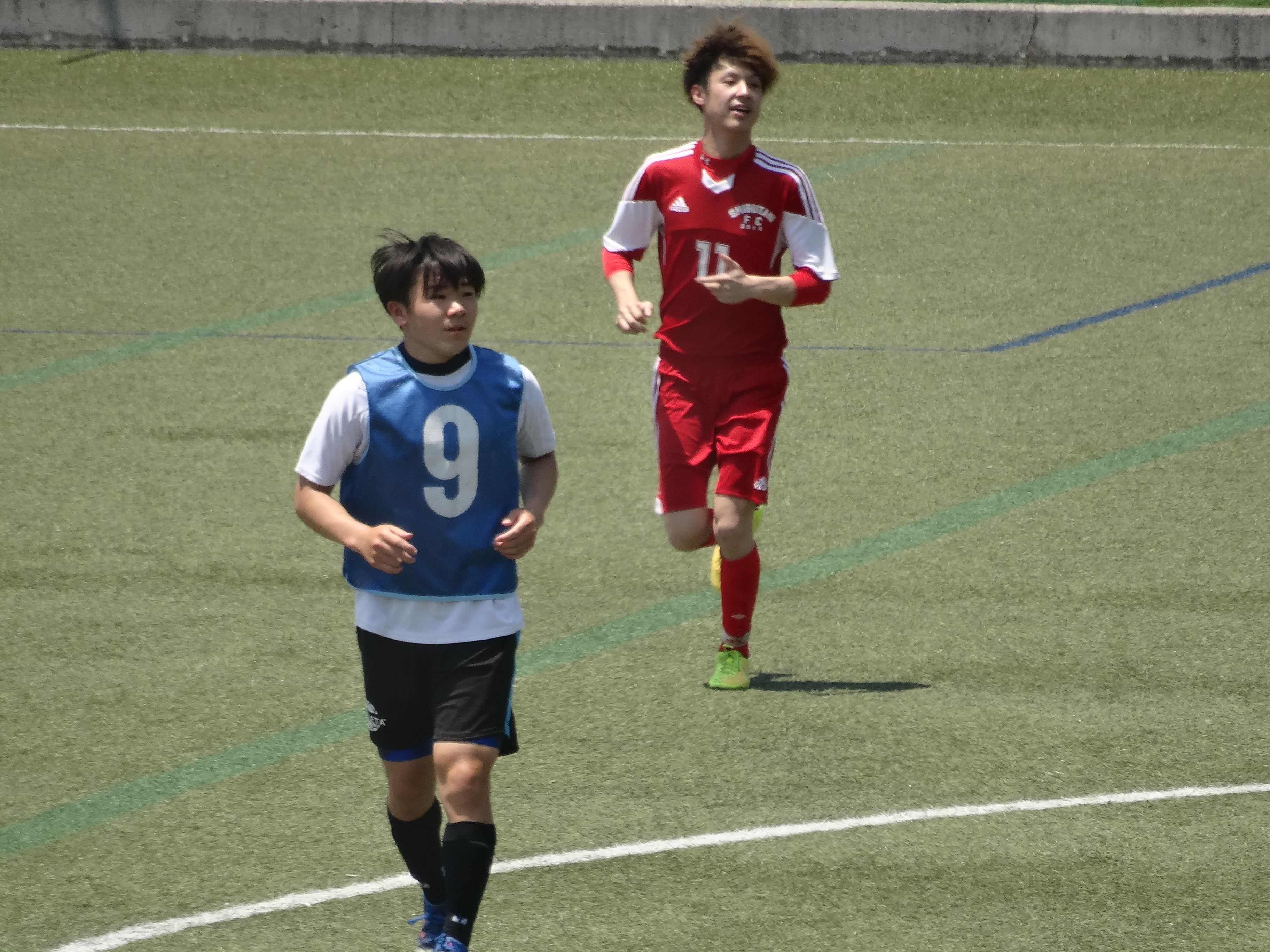 ▶練習試合の様子①(青ビブス❿:正本 悠人)(赤ユニ❿:猪野 翼くん)