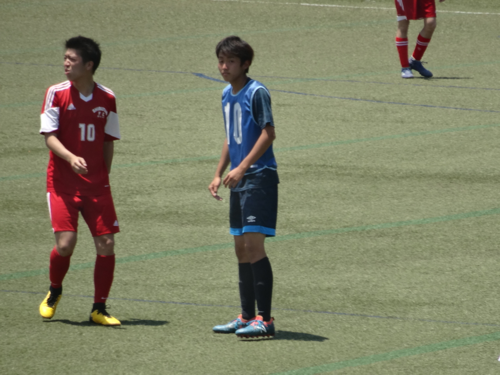今日は渋谷高校OBチームさんとの試合でした。開始から相手のペースに合わせてしまったのかゆったりとした入りになってしまい、先に先制点を許してしまいました。そこから少しスイッチが入ったのかシュートで終わる良い形が作れるようになり、そこで相手のCBのミスで自らの得点で同点にする事ができました。結構は勝てて良かったのですが常に自分達のペースで相手に合わせる事なく試合に挑めるようスポ祭、リーグ戦に向けて準備していきたいと思います。