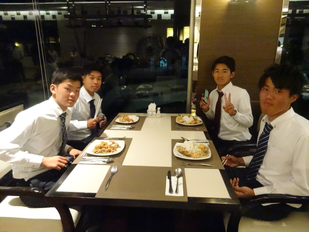 到着後、バイキング形式の夕食をいただき、1日目が無事終了しました。