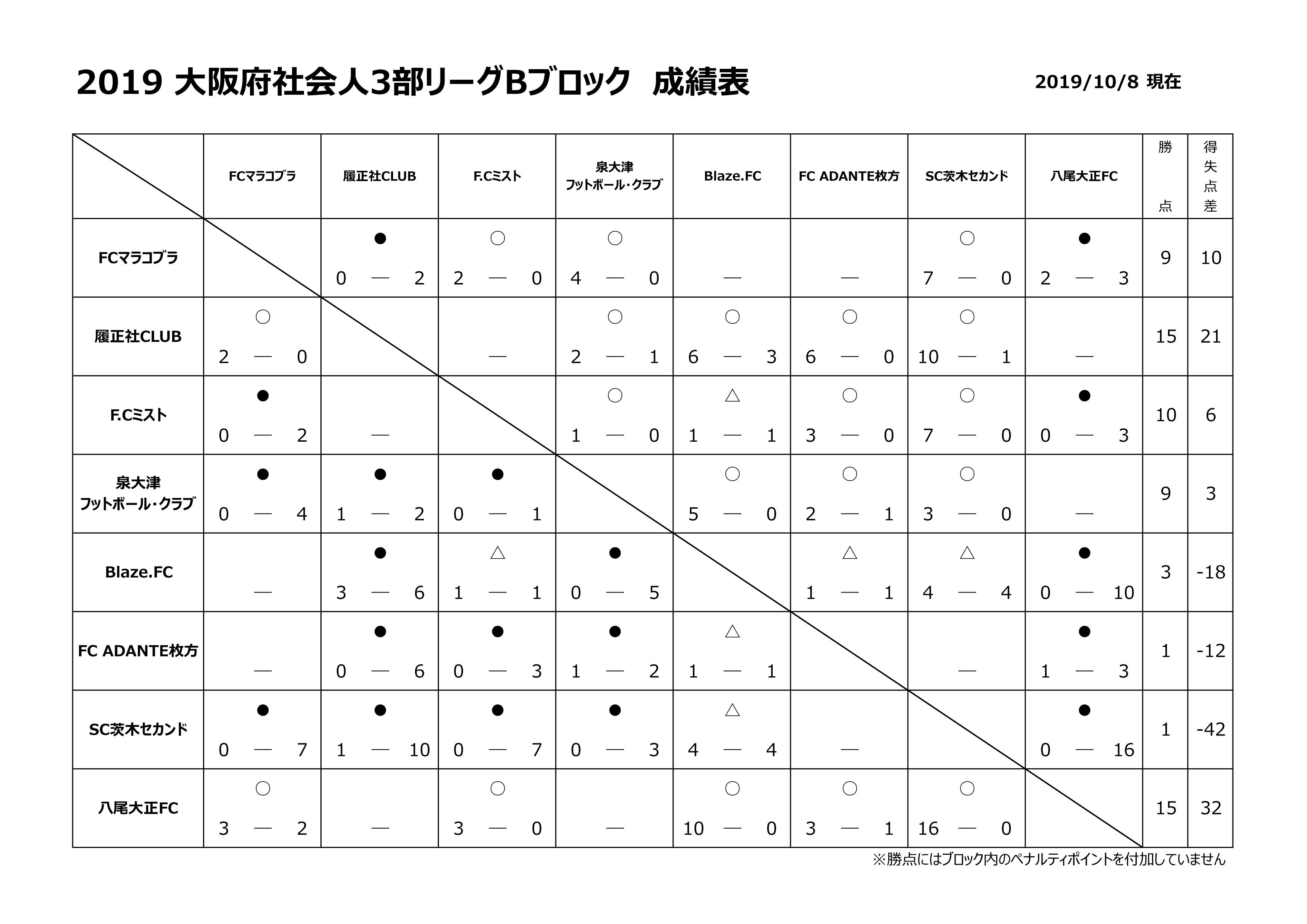 ▼大阪府社会人3部Bブロック星取表
