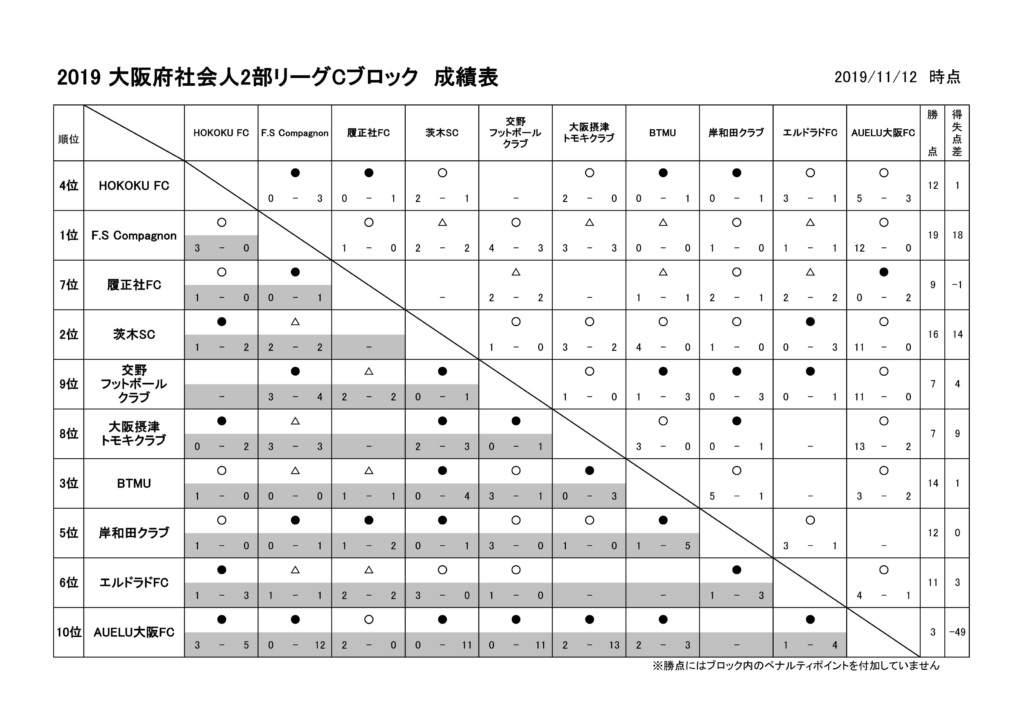 ▼2部Cブロック星取表