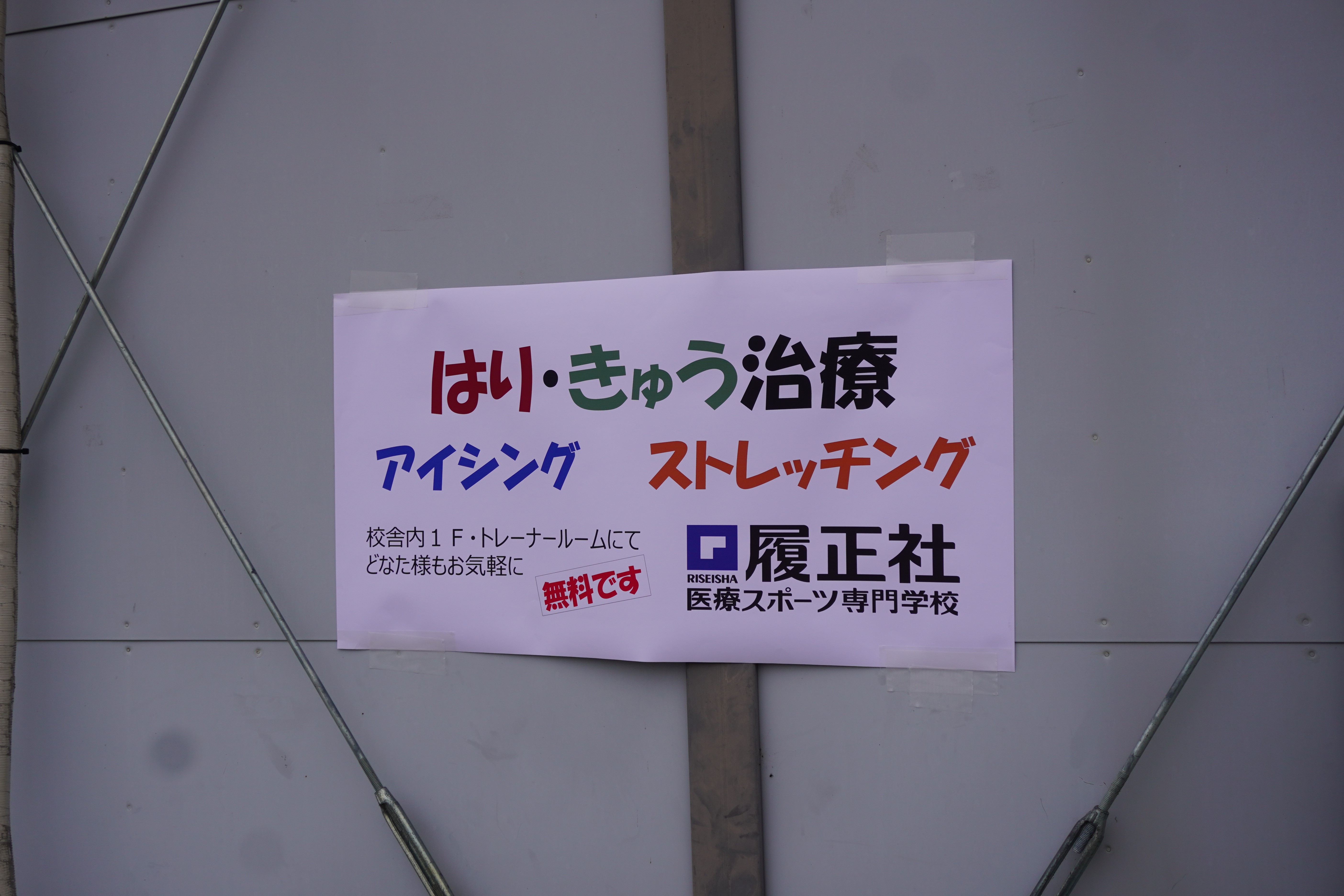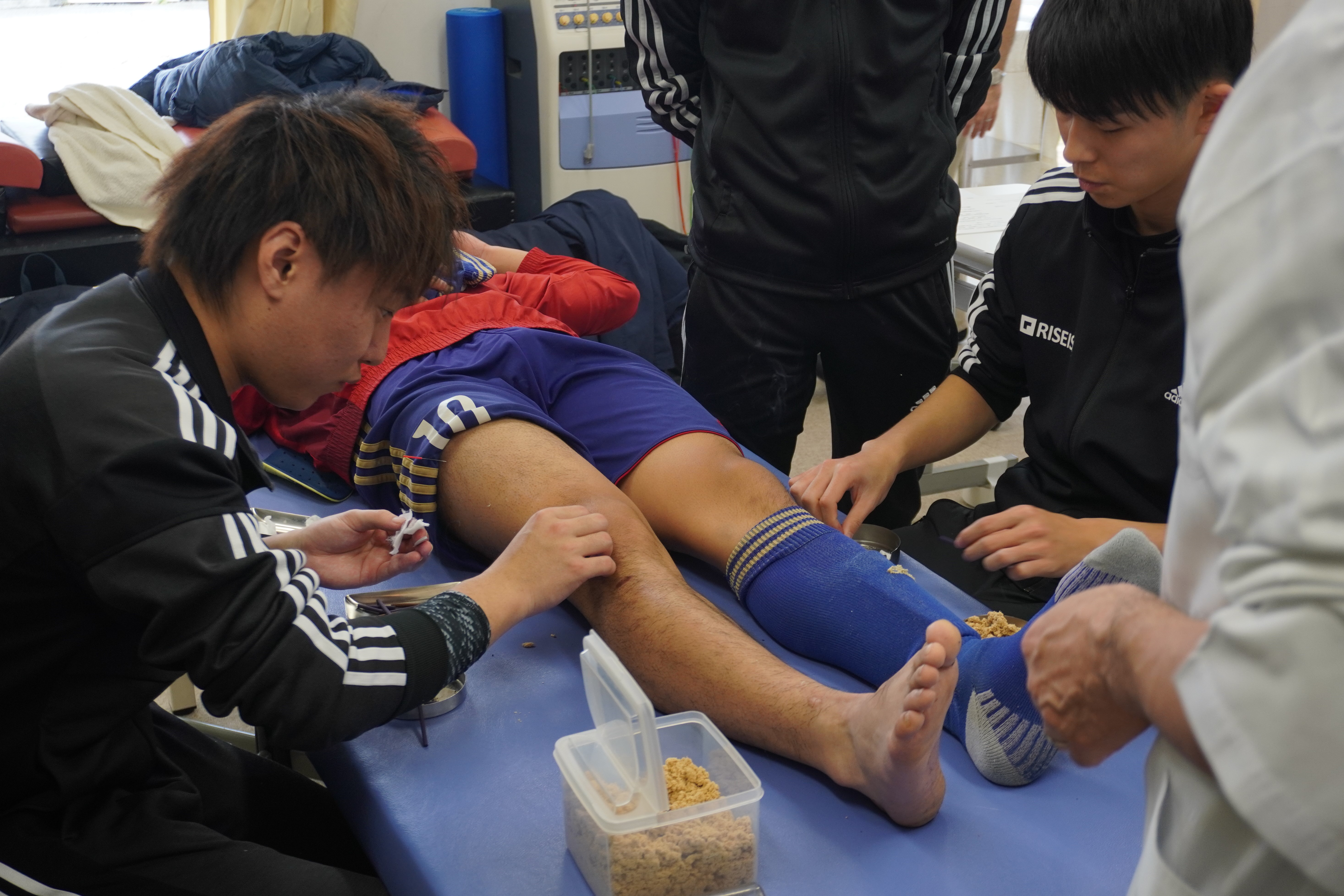 会場には医療学科の治療ブースも設置され、試合後や試合の合間に疲れた身体をアイシングしたりストレッチするなど鍼灸体験ですぐに癒しに来ていました。