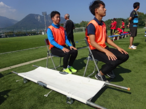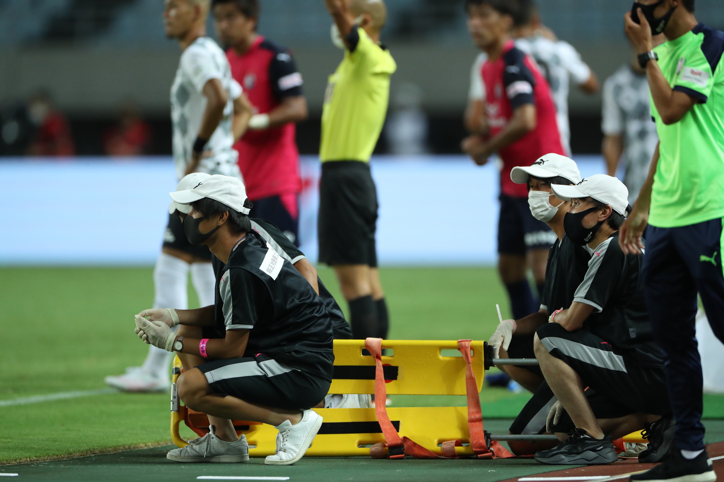 ▶2020年7月、セレッソ大阪vsヴィッセル神戸の試合で担架隊として試合運営に関わる学生たち