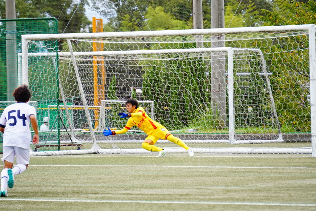 ▶キャプテン田島(2年:京都両洋高等学校出身)は最後尾からチームを鼓舞するも、複数失点を喫して後半途中に悔しい交代となった