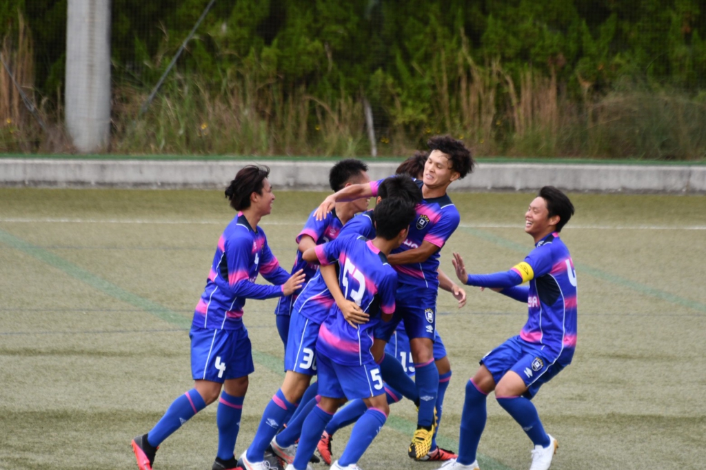 ▶リーグ初戦で決勝点を決めた1年大林(大阪府立布施工科高等学校 出身)を中心に歓喜の輪が出来る