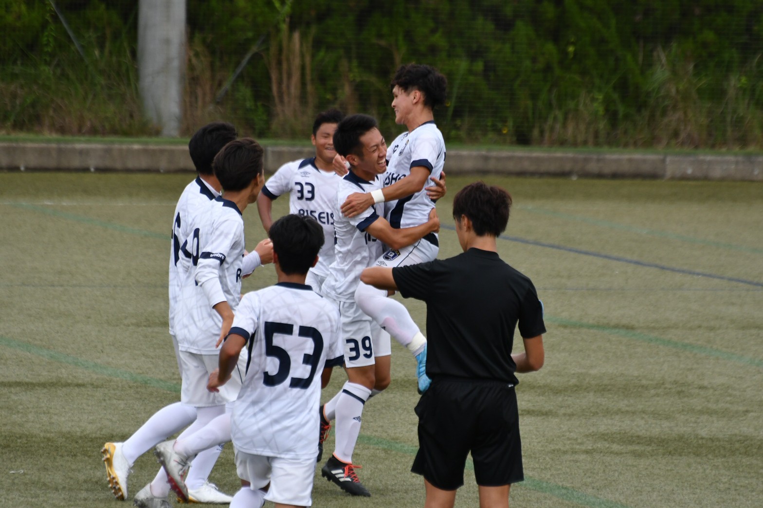 ▶リーグ初戦で決勝点を決めた1年大林(大阪府立布施工科高等学校 出身)を中心に歓喜の輪が出来る
