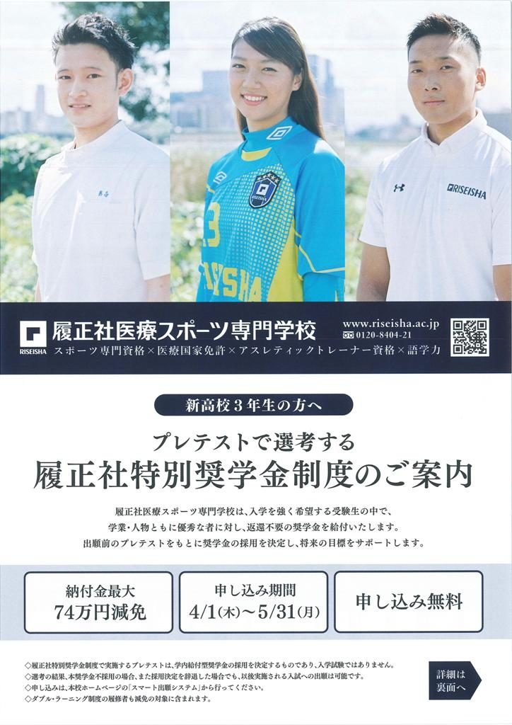 4月1日(木)から受付が始まった「履正社特別奨学金制度」ですが、5月31日(月)に受付を終了いたします。