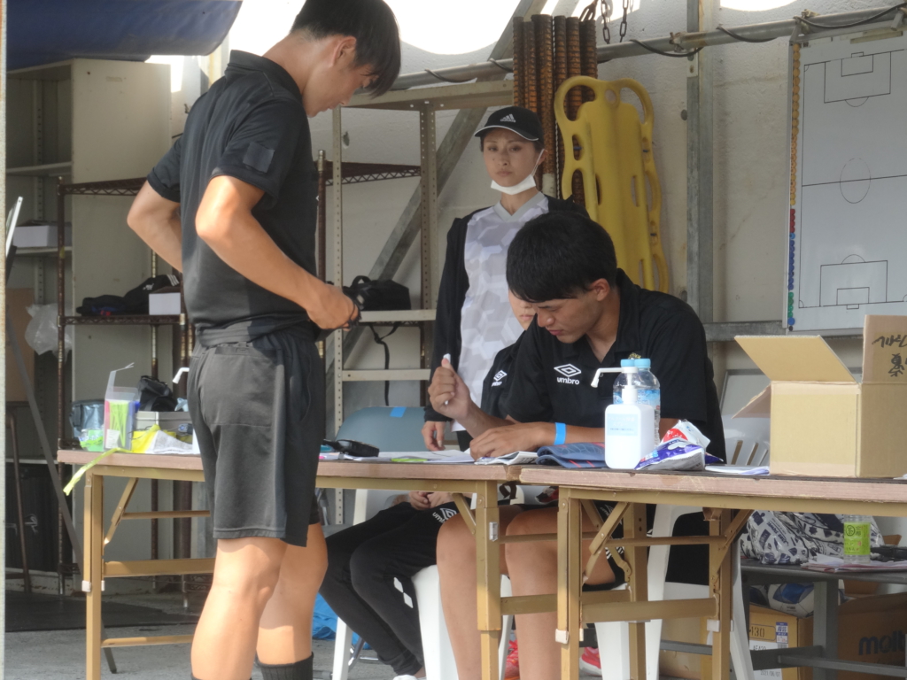 「釜本企画を通じて、僕はこのような自分達でイベントをする事が初めてだったのでとても楽しみでした。そして初めて小学生の審判をして小学生の頑張ってる姿を間近で見れて自分も頑張らないといけないなと感じました。2日間を通して小学生の成長する部分が見れたり一生懸命頑張ってる部分が見れてとてもいい体験ができたなと思いました。これからもこのような実習に積極的に参加したいです。」