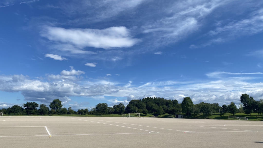 ▶コート作りに一苦労しました(場所:今津総合運動公園第2グラウンド)