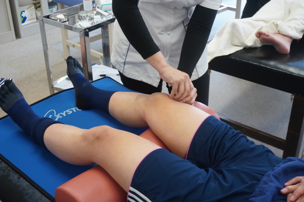 「今回のイベント運営法では、競技継続だけではなく、医療分野という新しい選択肢も増やしてもらおうと企画しました。結果は大成功!サッカーの試合だけではなく、アスレティックトレーナー(AT)資格を持つ広報部の西先生の障害予防のトレーニング講座では選手全員が楽しく取り組んでいた姿を見ることが出来ました。また、鍼灸の治療体験ブースでは選手だけでなく先生方も施術を体験して頂くなど、20名を超える多くの人たちに体験して頂けました。鍼灸学科の井前先生からも『鍼灸学科の学生にとっても良い勉強になった』と喜んでもらえました。