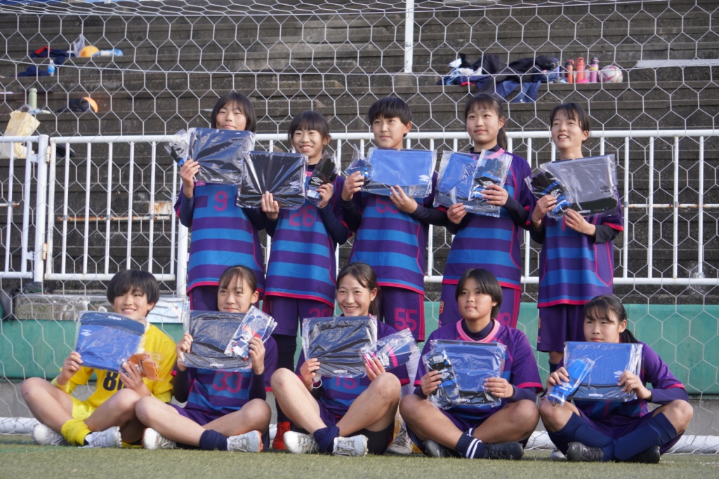優勝チームへの賞品として、「ネックウォーマー&手袋(参加選手分)」を授与させて頂きました。