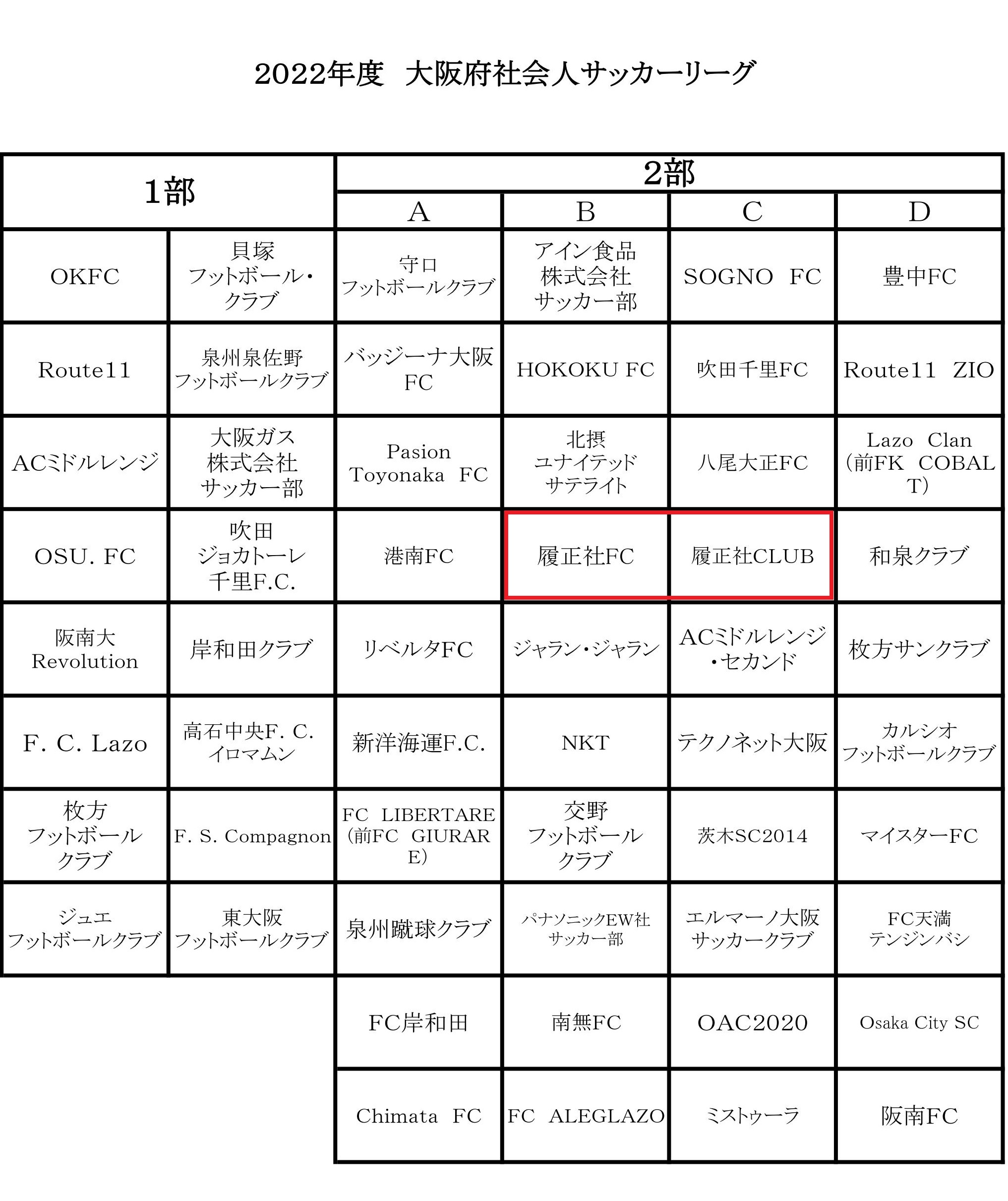 両チームが参戦する「2022年度 大阪府社会人サッカーリーグ」のブロック分けが決定したのでお知らせします✋