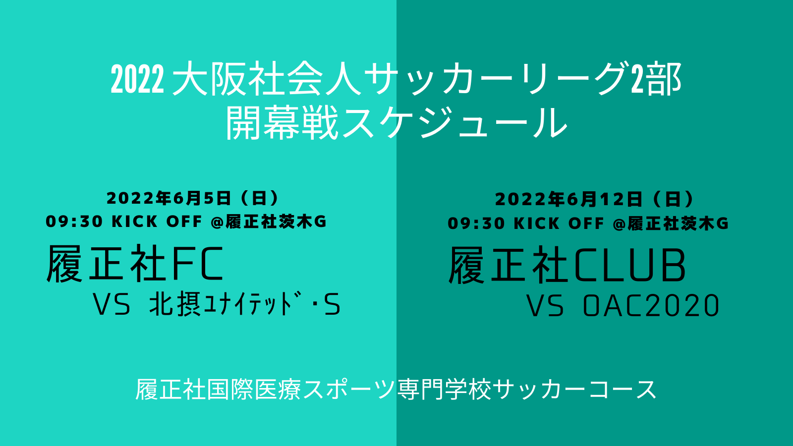 履正社FC と 履正社CLUB の両チームともに2部リーグに所属していますが、それぞれブロックが異なるため"直接対決"はありません。