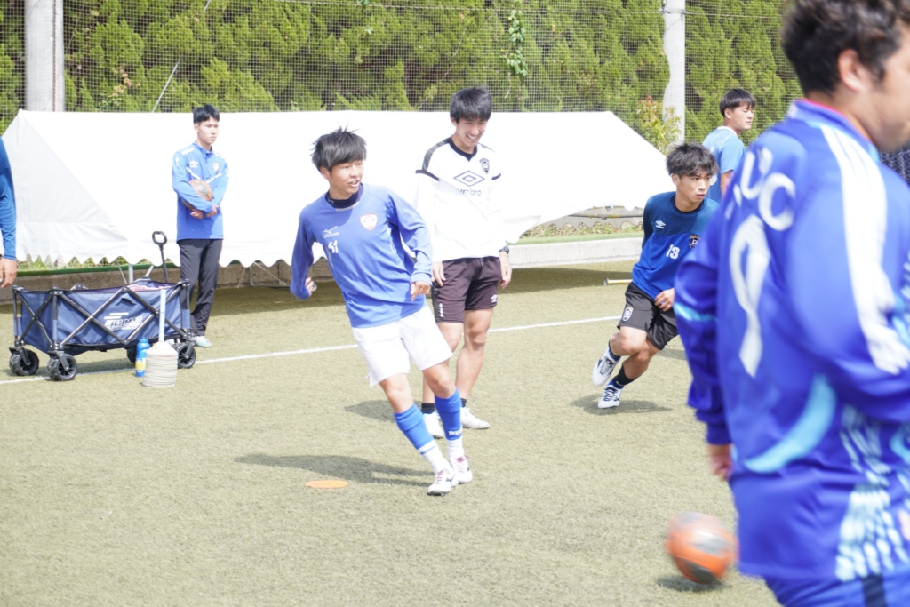 ともに大阪府社会人リーグ(現在は2部に在籍)に参加していますが、履正社FCはJリーグで監督、コーチ、フロントを務め、S級ライセンスを持つ高祖和弘先生が監督です。大会優勝に向け、日々しのぎを削っています。履正社CLUBも監督は高祖先生ですが、僕がコーチとしてチームを担当しています。こちらは競技にブランクがある学生や未経験者など、さまざまな競技レベルの学生がいます。
