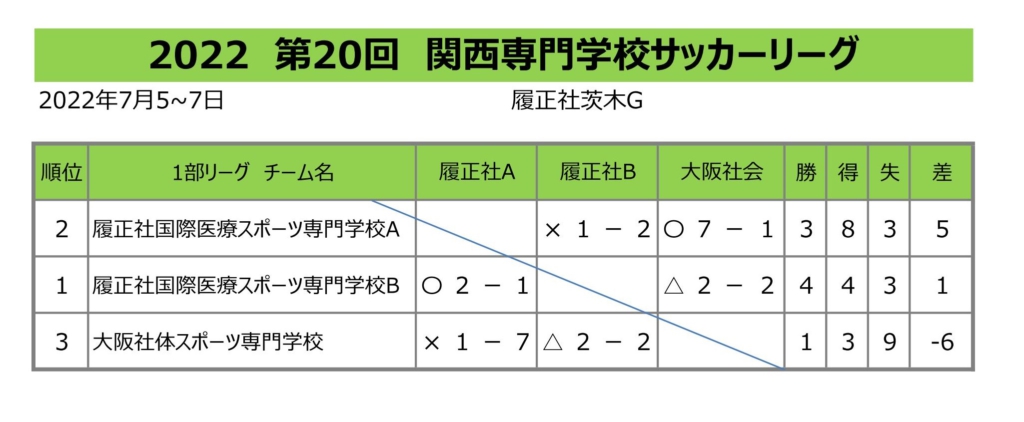 『2022年度 第20回 関西専門学校サッカーリーグ』が、7月5日(火)~7日(木)の3日間、履正社茨木グラウンドが会場となり実施されました。