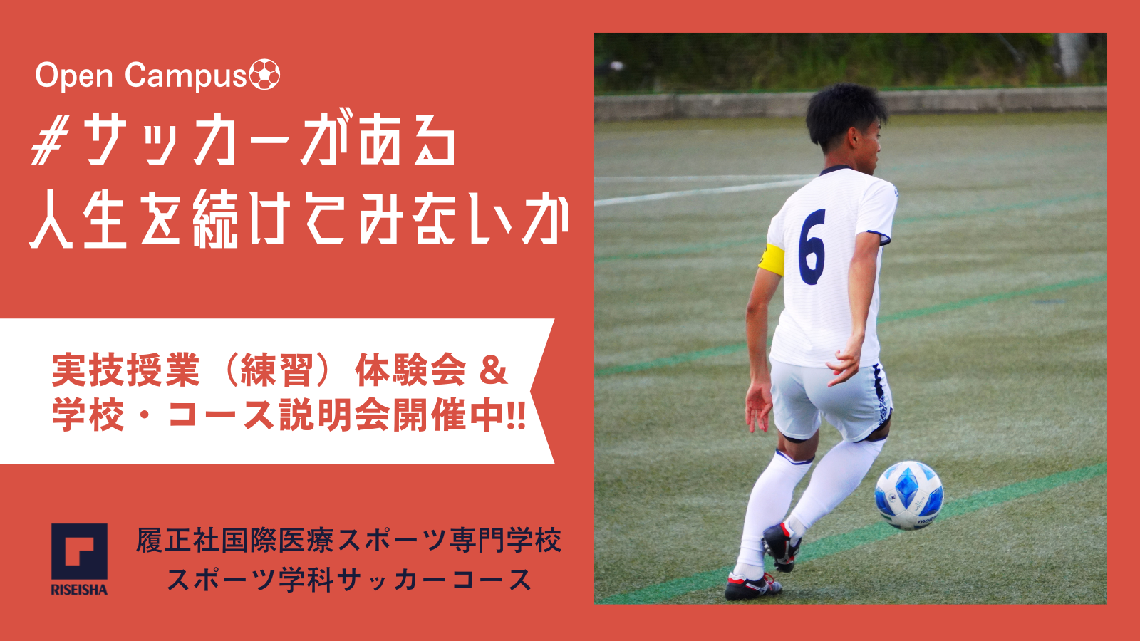 サッカーコースでは、茨木キャンパスでの『実技授業(練習)体験会』と十三キャンパスやオンラインによる『学校・コース説明会』を行っております。