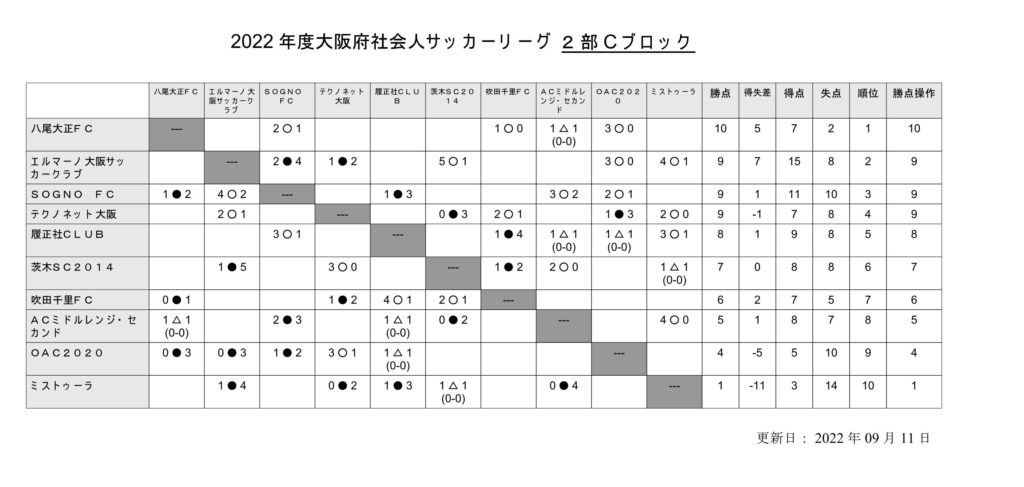 大阪社会人サッカーリーグ2部Cブロック第6節
