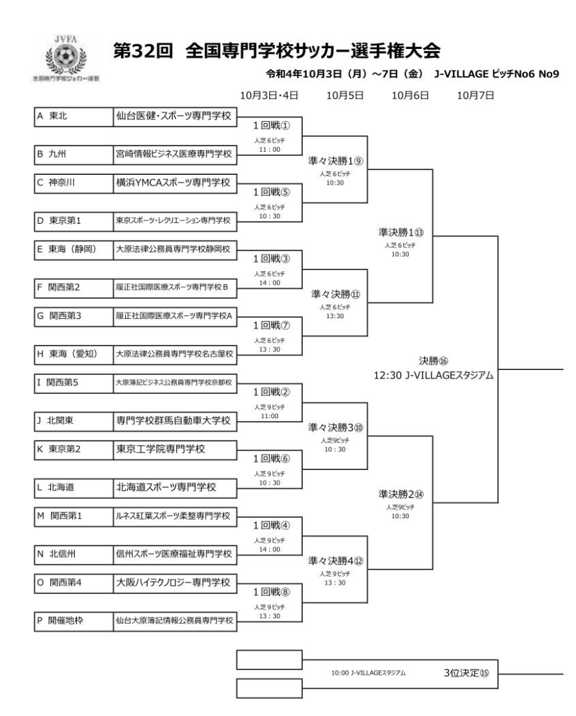 『2022年度 第32回全国専門学校サッカー選手権大会』が、10月3日(月)~7日(金)の日程で福島県双葉郡にある『J-VILLAGE』で行われます。