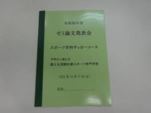 サッカーコースの2年生にとって、卒業に向けた一大イベントである「ゼミ論文発表会」が2022年12月17日(土)に行われました。
