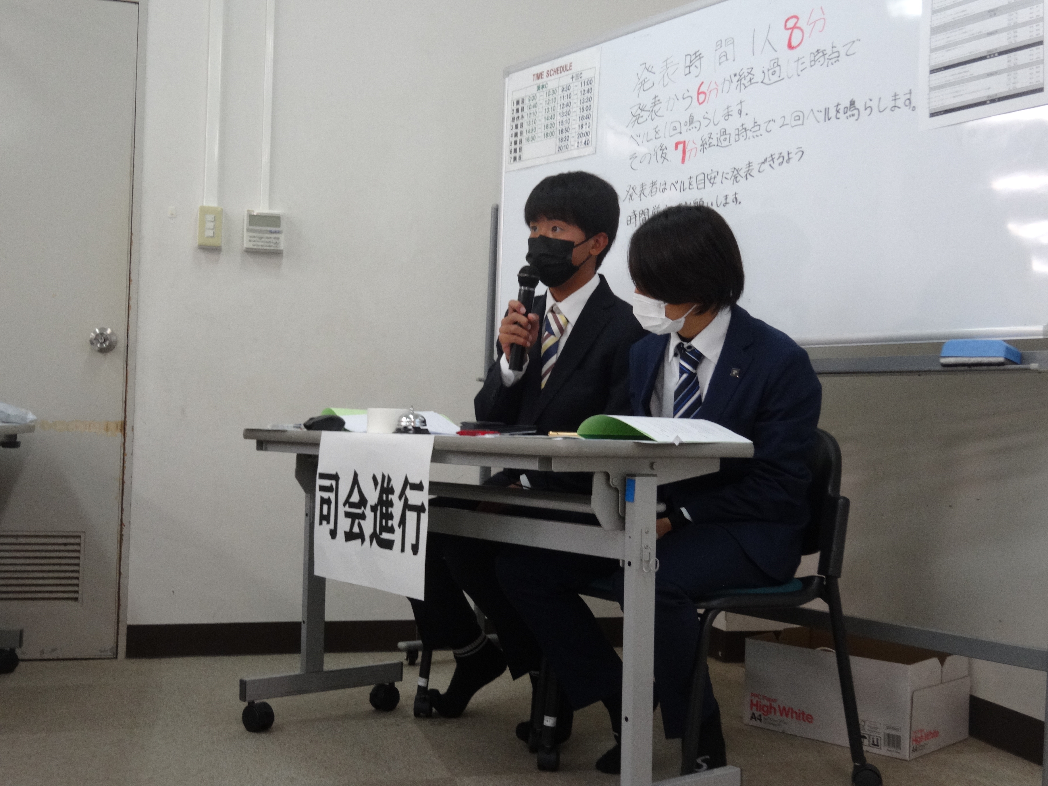 ▶1年生が司会・進行を務めました(瀬川 大悟・大草 子廉)