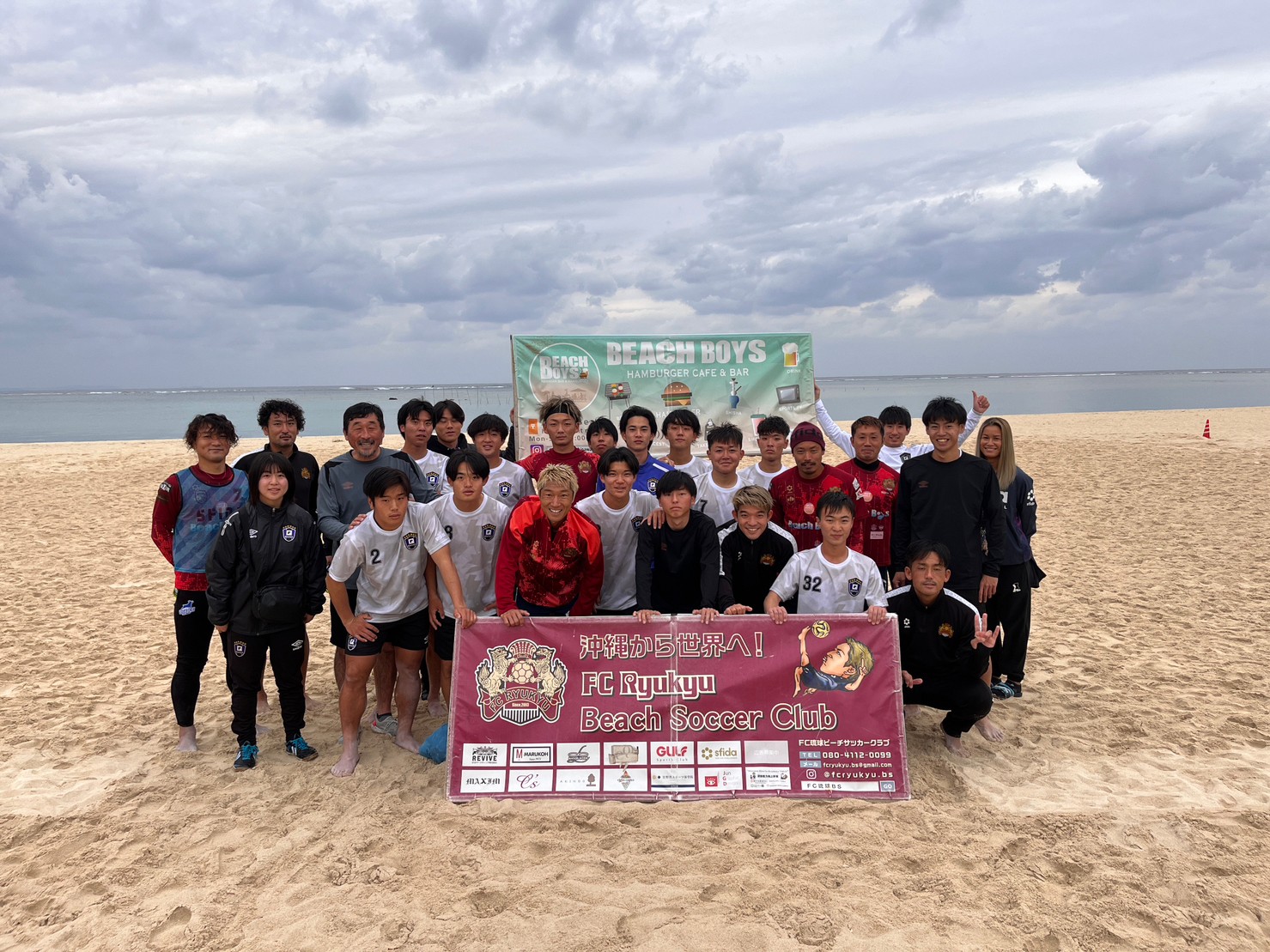 「沖縄研修2日目。午前中にビーチボーイズのみなさんとビーチサッカーを行いました。