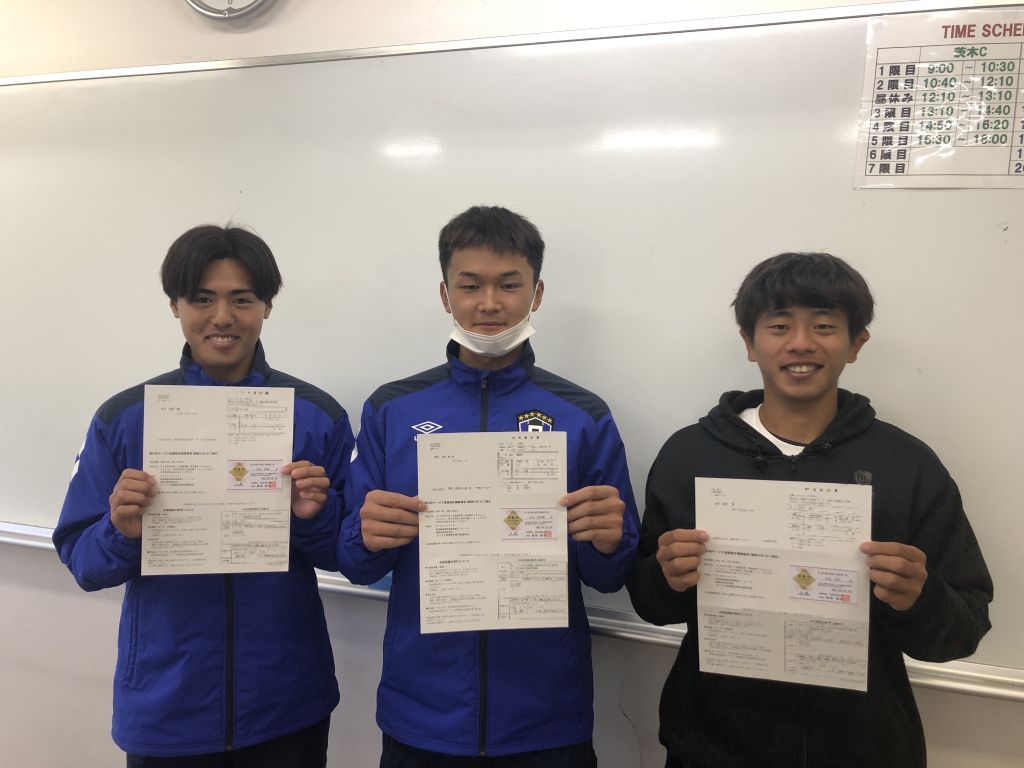 サッカーコースでは、卒業までに3つの資格取得を目標にしています。
