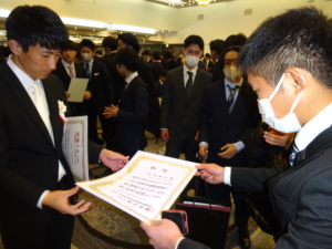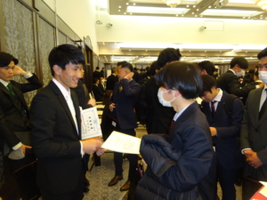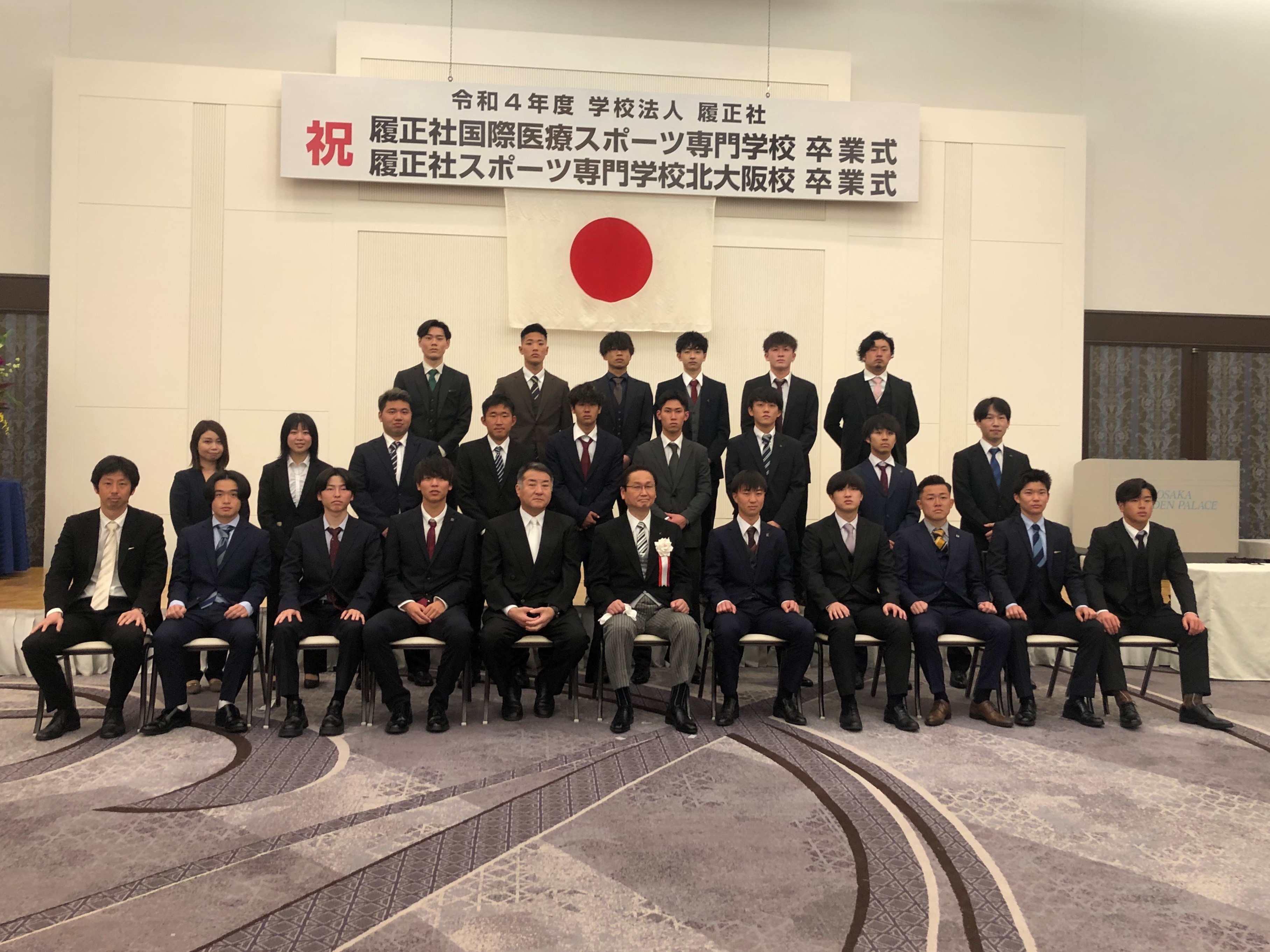 2023.03.10 2022年度 卒業式 2023年3月9日(木)、大阪ガーデンパレスで令和4(2022)年度の卒業式が行われました。 今年度、サッカーコースからは22名の卒業生を送り出すこととなりました。 ※競技AT専攻として3年間頑張った2名含む ▶2年間をともにした仲間たちと記念撮影📷 ▶会場は「大阪ガーデンパレス」 ▶担任の紙本先生から、ひとり一人に卒業証書を渡しました 皆さん、ご卒業おめでとうございます! これからの活躍、そしてまた会えることを楽しみにしています‼ 前の記事 記事一覧 次の記事