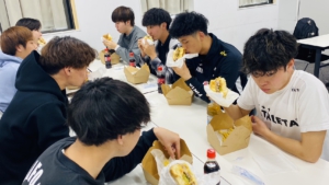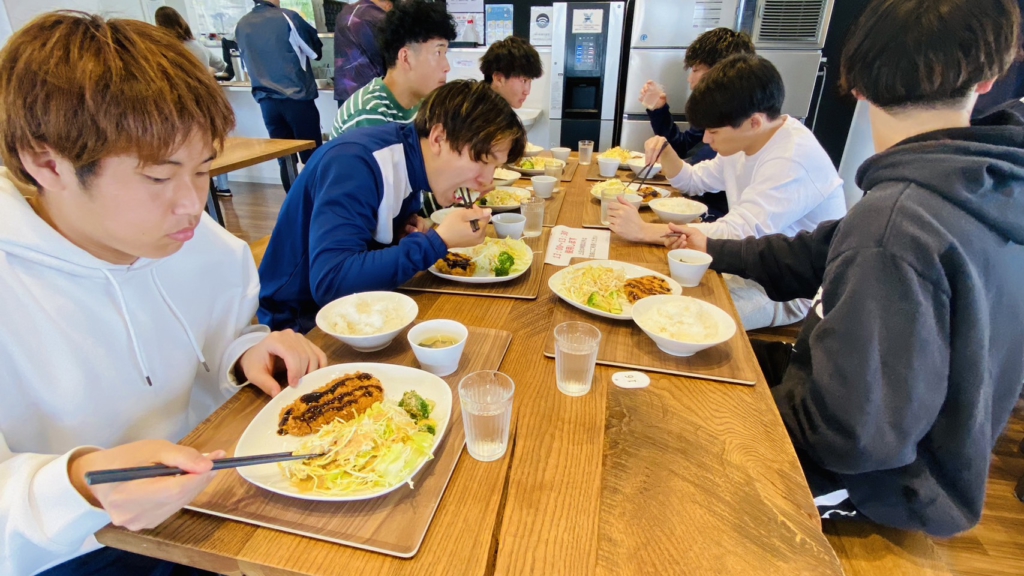 ミニゲームで少し汗を流した後は、箕面キャンパスの食堂で昼食会!