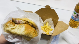 屋台もたくさんあったので、小腹が空いた学生は美味しそうに食べていました。