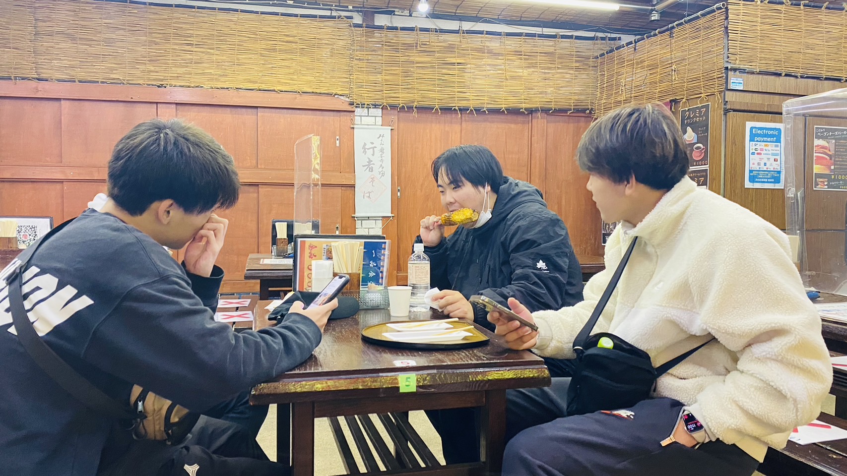 屋台もたくさんあったので、小腹が空いた学生は美味しそうに食べていました。