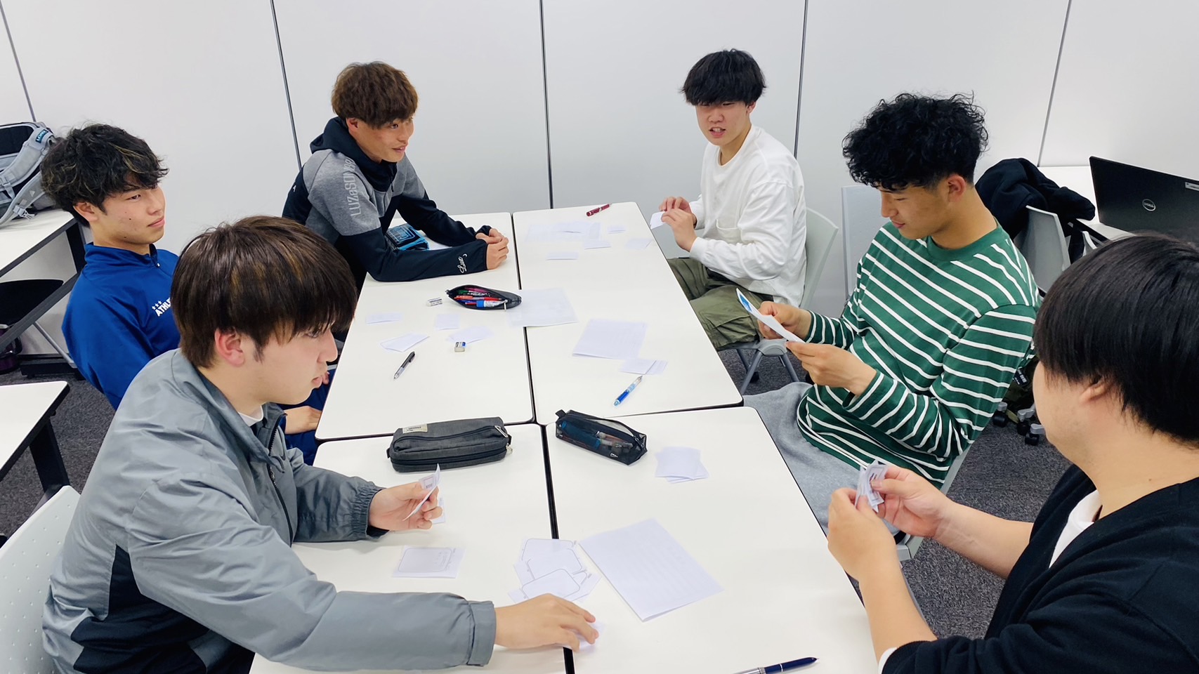 ▲知恵を出し合うペパータワーと報連相が必要な部課長ゲーム